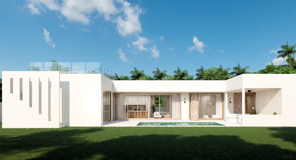 Relax by your private swimming pool featuring a salt water filtration system, or head up to the magnificent rooftop terrace offering a panoramic sea view of the Gulf of Thailand. This premium villa development ensures peace of mind with a secure 30-year renewable leasehold officially registered at the land office, along with access to government water and electricity.