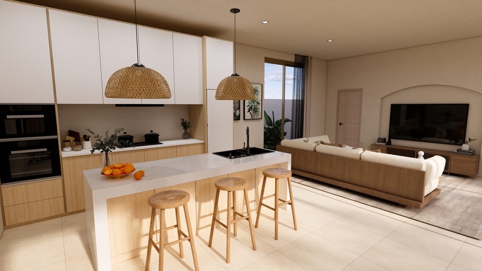 The interior includes 3 spacious bedrooms, 4 modern bathrooms with premium bathroom fittings, and an open kitchen that comes fully equippedwith modern appliances. Designed for ultimate comfort, the home includes full air conditioning and a seamless flow to the outdoor terraces with sea views.