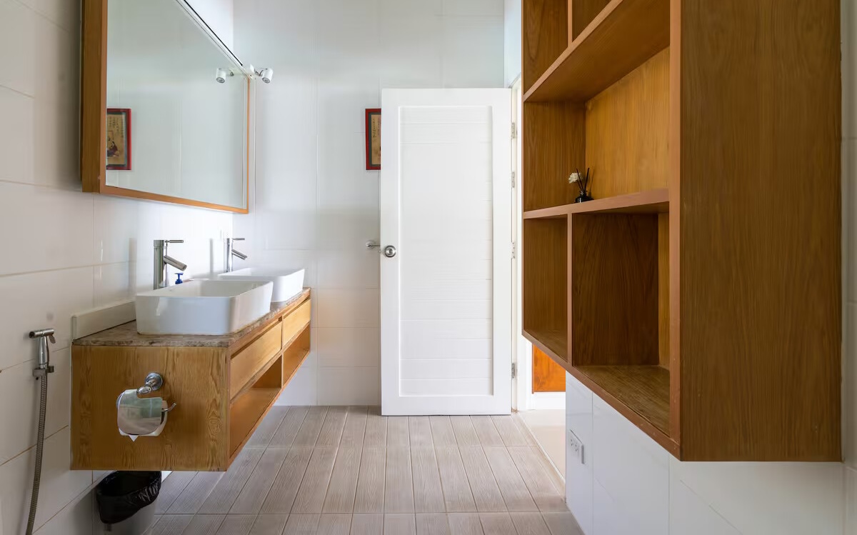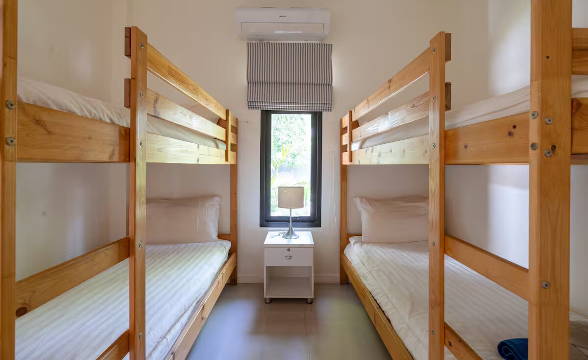 The property includes four comfortable bedrooms and three bathrooms designed for privacy and convenience. Two of the bedrooms enjoy direct sea views, while another bedroom overlooks the lush tropical garden. The villa also features a family bedroom designed specifically for children, equipped with two bunk beds that can accommodate up to four kids. Each bedroom has been thoughtfully arranged to provide comfortable living for families, guests, or holiday rental use.