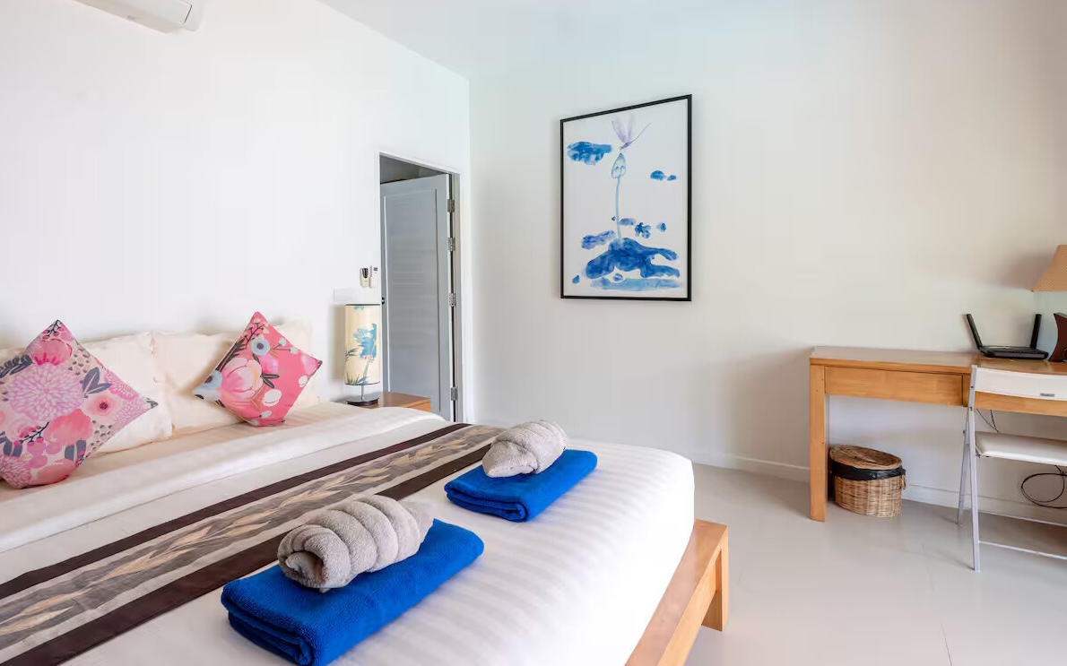 Situated within a secure gated estate, this Koh Samui villa for sale offers both privacy and convenience. The location in Ang Thong provides a peaceful coastal environment while remaining close to essential amenities. Several beachfront restaurants and bars are located nearby, and Nathon, the island’s main town, is just a 10-minute drive away where residents will find supermarkets, markets, banks, restaurants, and ferry connections to the mainland.