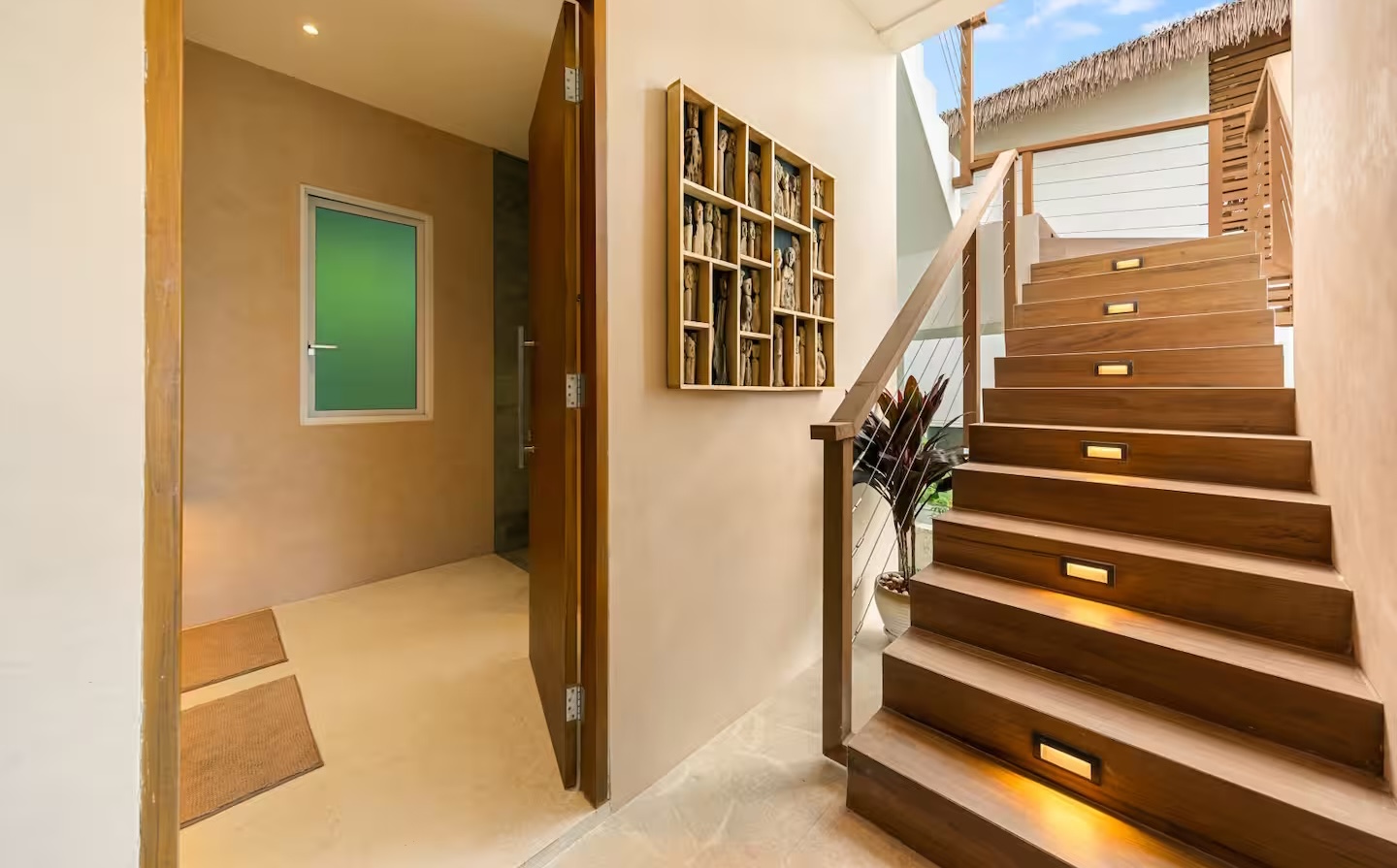 Set amid lush tropical greenery and towering trees, this luxury open-plan villa seamlessly blends the indoors with the stunning natural landscape. The architectural design maximizes the hillside and ocean views with dramatic high ceilings and stylish sloping roofs.