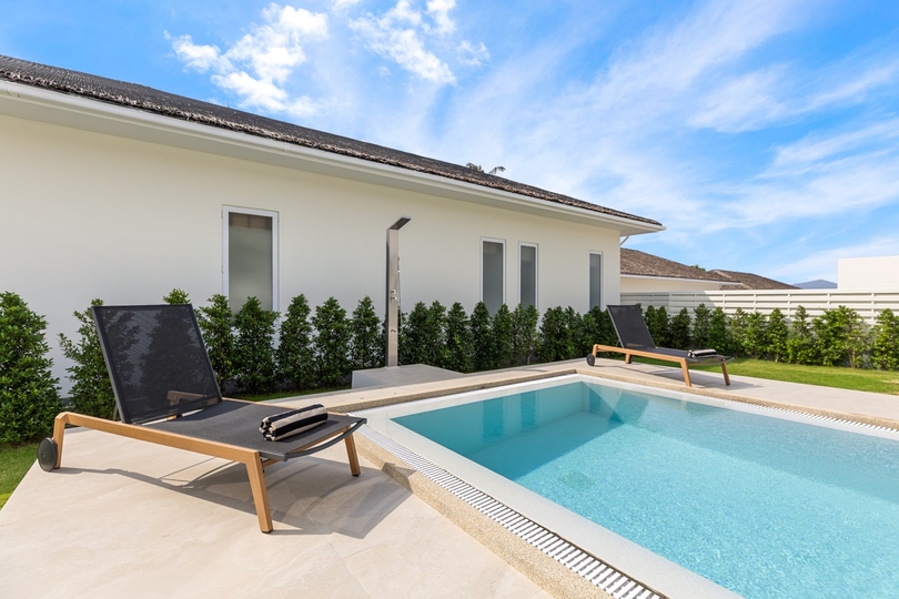 Experience tropical living in this exquisite 3-bedroom pool villa for sale in Plai Laem. This stunning residence masterfully blends the tranquil aesthetic of Bali-style architecture with high-end modern luxury. The heart of the home is a spacious, open-plan living area engineered to maximize natural light and tropical ventilation, creating a bright, airy sanctuary. Nestled within lushly landscaped gardens and featuring a private infinity pool, this property serves as an exclusive retreat perfect for those seeking a luxury vacation home in Koh Samui or a high-yield investment property.