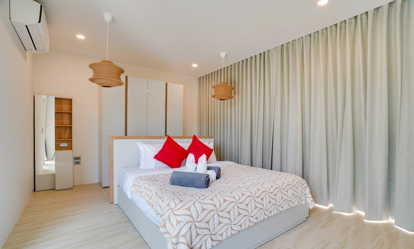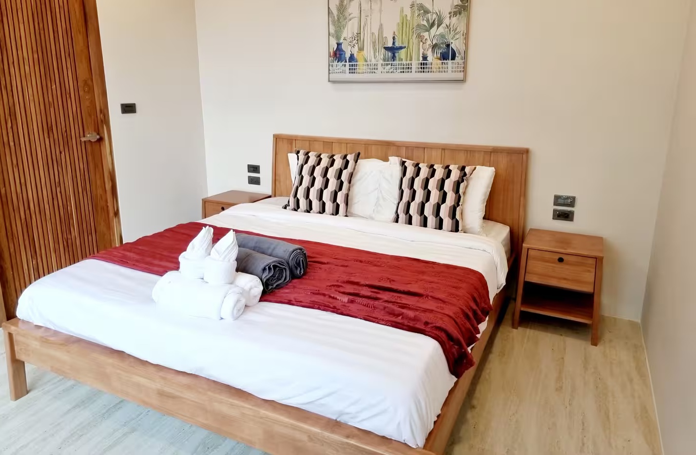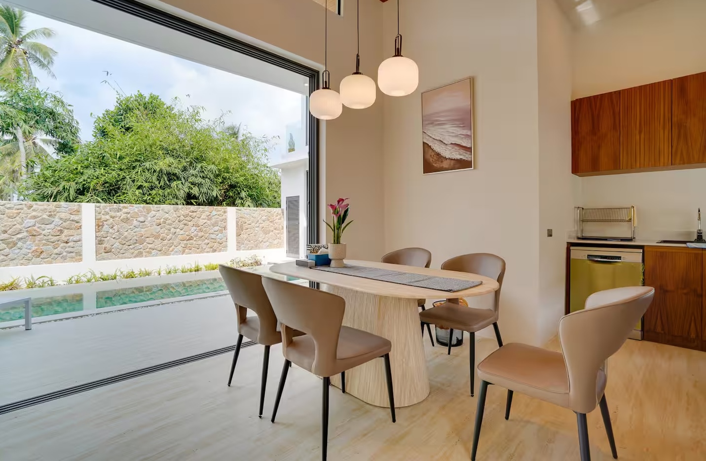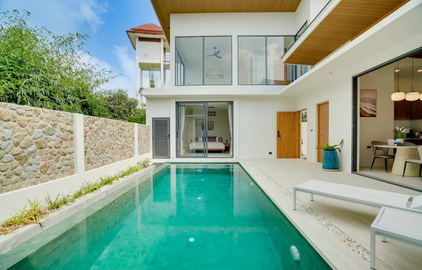 An exclusive new project of three luxury 4-bedroom villas for sale is now available in the highly desirable Bangrak area of Koh Samui. Offering an ideal combination of comfort and sophistication, these residences are situated just moments from the island’s most beautiful beaches. Their prime location ensures both privacy and serenity, while remaining within easy reach of local amenities and vibrant attractions.