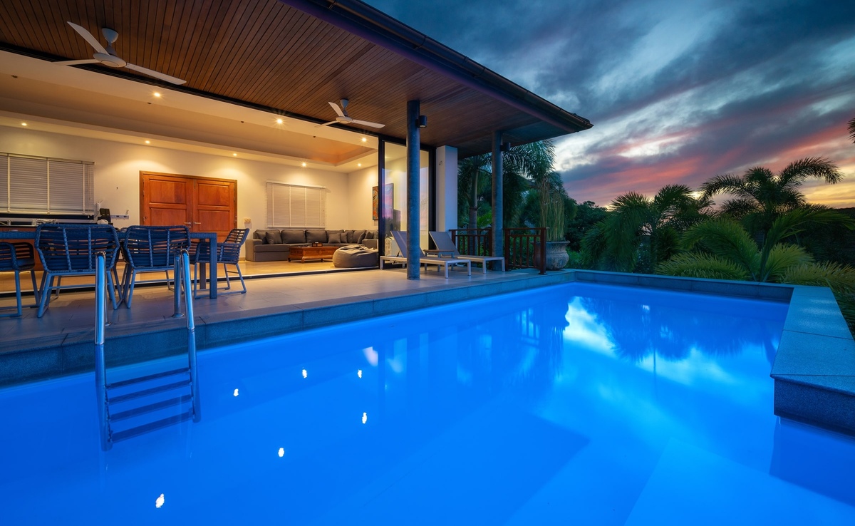 This stunning Tropical Koh Samui Villa is perfectly positioned in the hills of Lamai, just a five-minute drive from pristine beaches and a vibrant selection of local bars and restaurants. Established in 2014, this sophisticated two-floor building offers residents the opportunity to wake up to sweeping panoramas of the island’s turquoise seascape. Surrounded by mature tropical trees and expertly manicured lawns, the property serves as a highly functional island retreat, blending modern comfort with eye-catching touches of authentic Thai luxury.