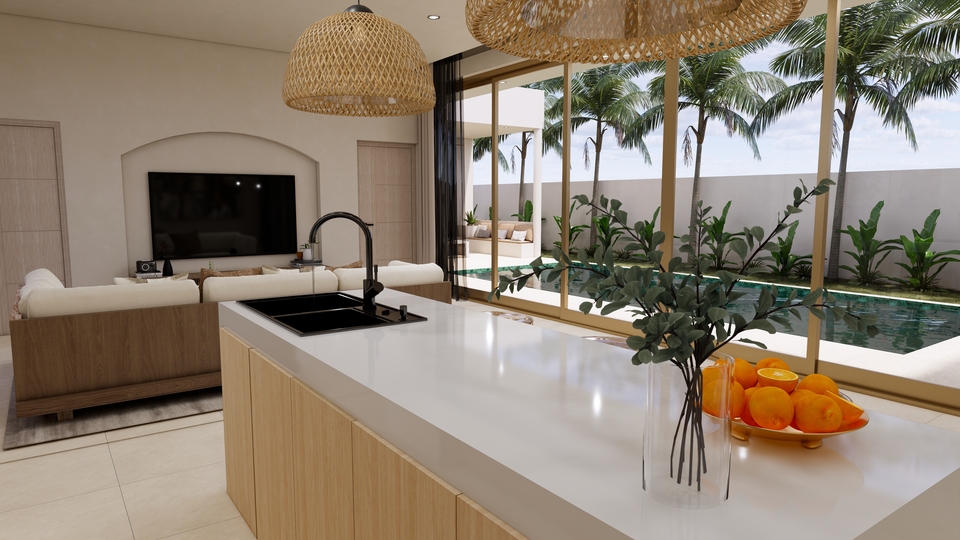 The interior includes 3 spacious bedrooms, 4 modern bathrooms with premium bathroom fittings, and an open kitchen that comes fully equippedwith modern appliances. Designed for ultimate comfort, the home includes full air conditioning and a seamless flow to the outdoor terraces with sea views.