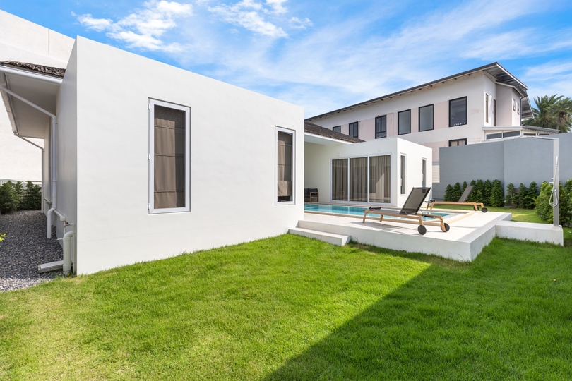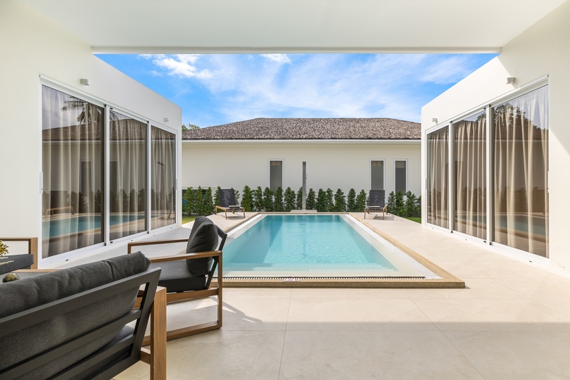 Experience tropical living in this exquisite 3-bedroom pool villa for sale in Plai Laem. This stunning residence masterfully blends the tranquil aesthetic of Bali-style architecture with high-end modern luxury. The heart of the home is a spacious, open-plan living area engineered to maximize natural light and tropical ventilation, creating a bright, airy sanctuary. Nestled within lushly landscaped gardens and featuring a private infinity pool, this property serves as an exclusive retreat perfect for those seeking a luxury vacation home in Koh Samui or a high-yield investment property.