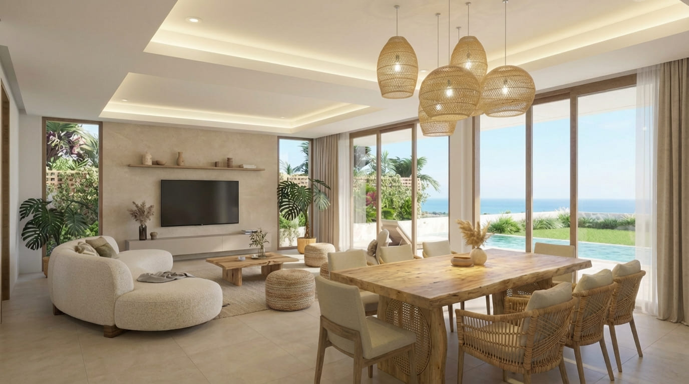 Step into a space where modern sophistication meets the open air. This isn't just a villa—it's a sanctuary designed for the modern connoisseur. Each of the five master suites is anchored by private en-suite bathrooms featuring noble travertine finishes, reflecting a dedication to craftsmanship that is visible in every corner. The grand living areas showcase high ceilings and a fluid, indoor-outdoor flow, where a private infinity pool serves as the home’s heartbeat, creating a seamless visual bridge between the gourmet kitchen and the sea.