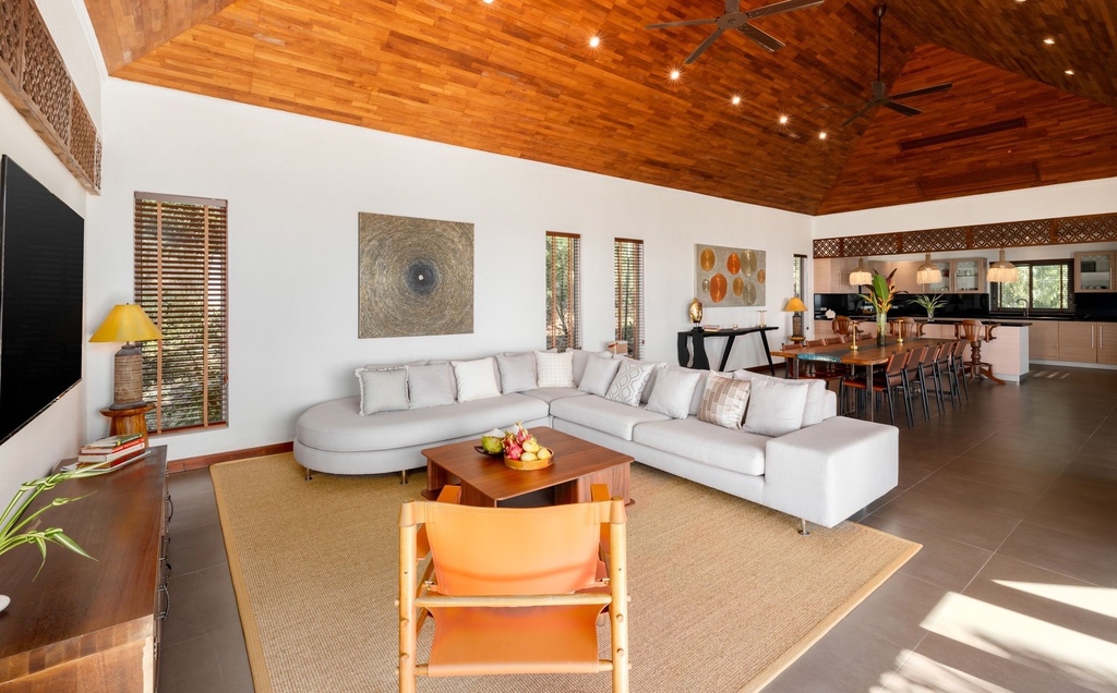 Recently renovated in 2024, the villa has been thoughtfully enhanced with an elegant outdoor sala — ideal for alfresco dining or lounging in the tropical breeze. A fifth bedroom has been added on the lower floor, offering additional versatility for guests, extended family, or staff accommodation. The property now comprises five spacious bedrooms and six bathrooms, ensuring comfort, privacy, and functionality for both residential living and rental investment potential.