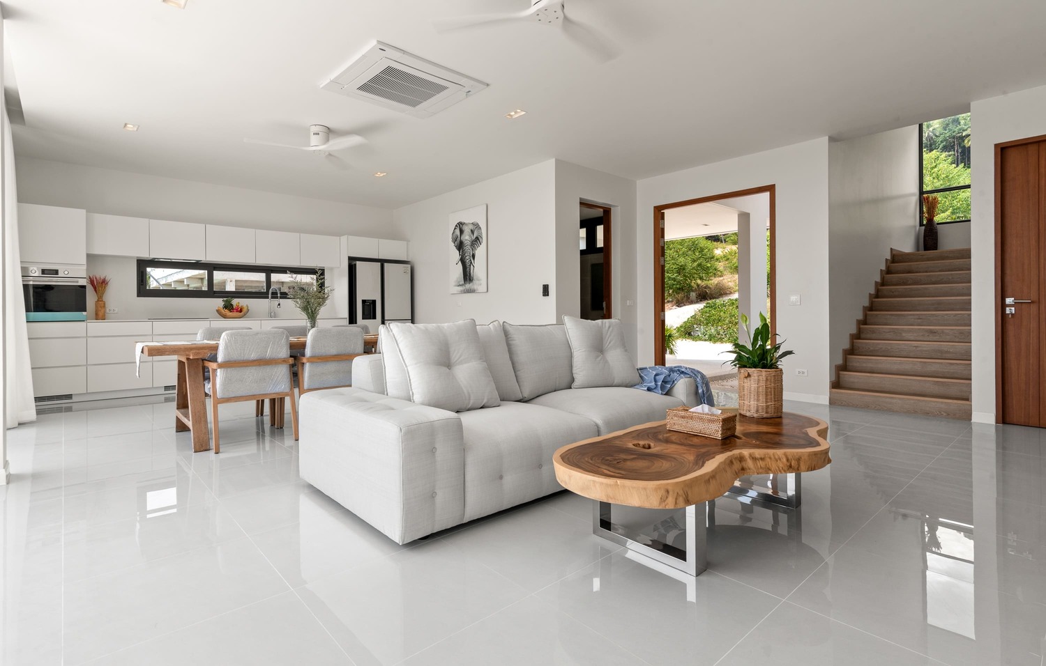 This exceptional seaview villa for sale in Koh Samui offers a rare combination of modern luxury and uncompromising construction quality. The property was developed with meticulous German engineering, ensuring it meets high European standards for both comfort and durability.