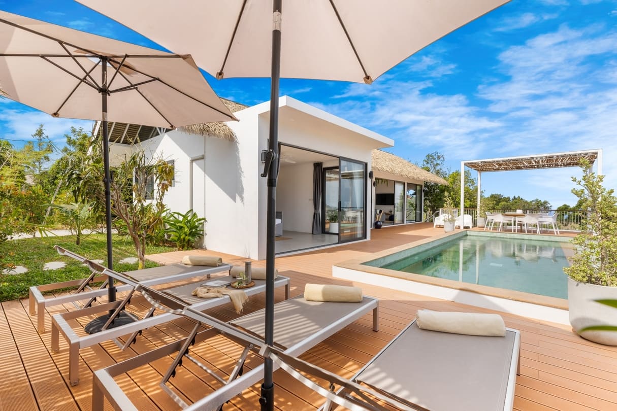 This exceptional luxury pool villa for sale in Koh Phangan is located within the prestigious Villas development in Mae Haad, offering a rare combination of elevated design, panoramic ocean views, and strong investment potential. Set on a prime 740 sqm land plot, this villa captures breathtaking vistas across Chaloklum Bay, Koh Tao, and Koh Ma, making it one of the most desirable Koh Phangan real estate opportunities currently available. The asking price is available on request, positioning this as a high-value acquisition for both lifestyle buyers and investors.